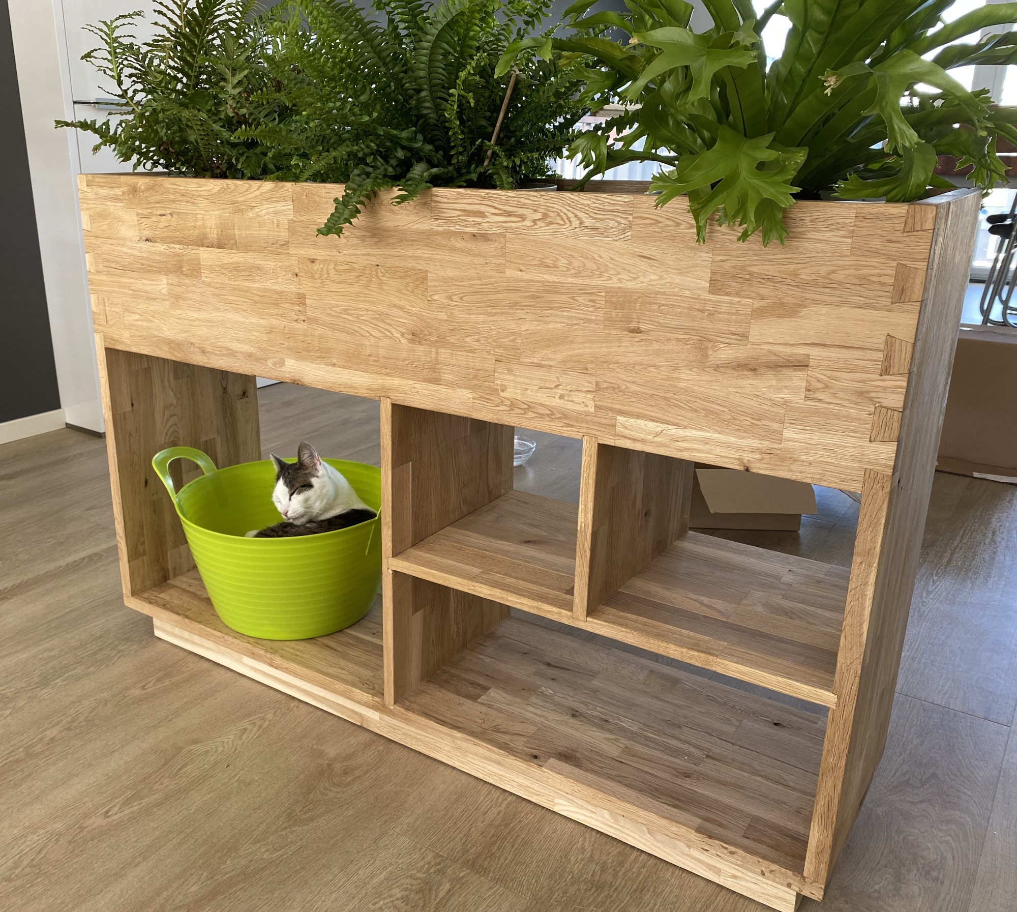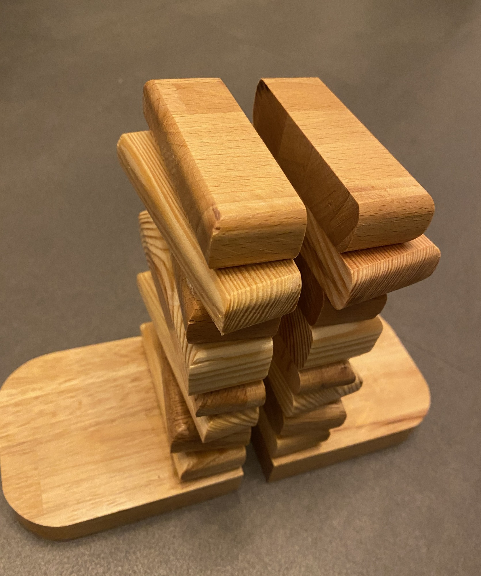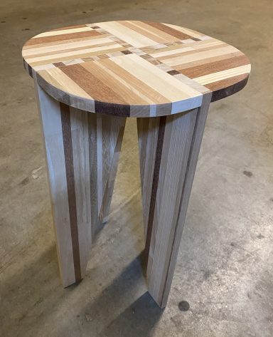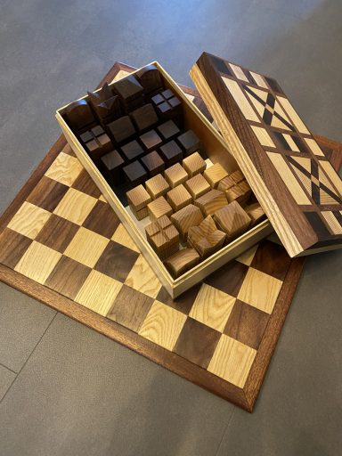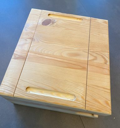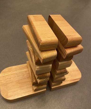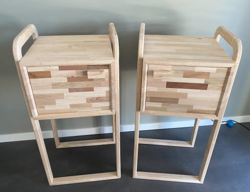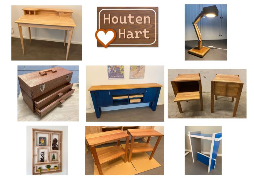 Ik werk zo veel mogelijk met gerecycled hout, en recycle zelf ook weer het resthout. Er gaat bij mij niets verloren. Als ik weer eens een doos vol met blokjes resthout heb, dan probeer ik daar iets leuk van te creëren.