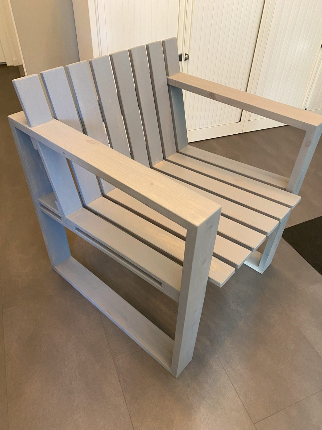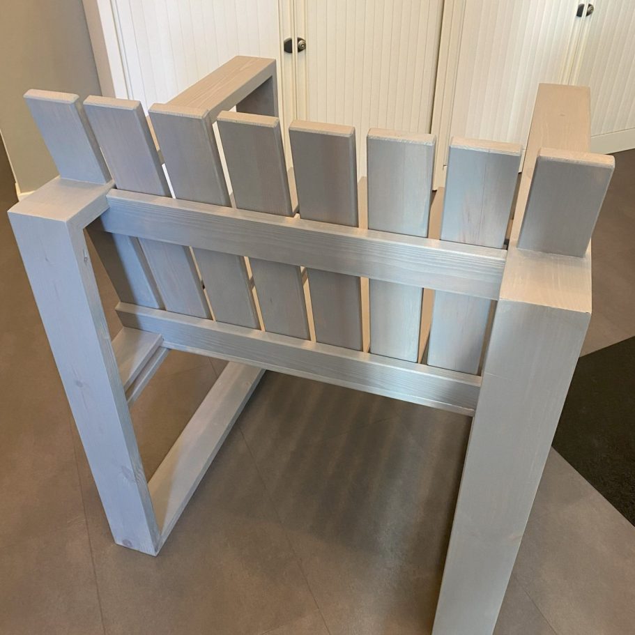 De stoel is gemaakt van massief hout en geïnspireerd op een Deens ontwerp uit de jaren 50. De stoel is afgewerkt met een grijze transparante beits waardoor de houtnerf nog mooi zichtbaar is.