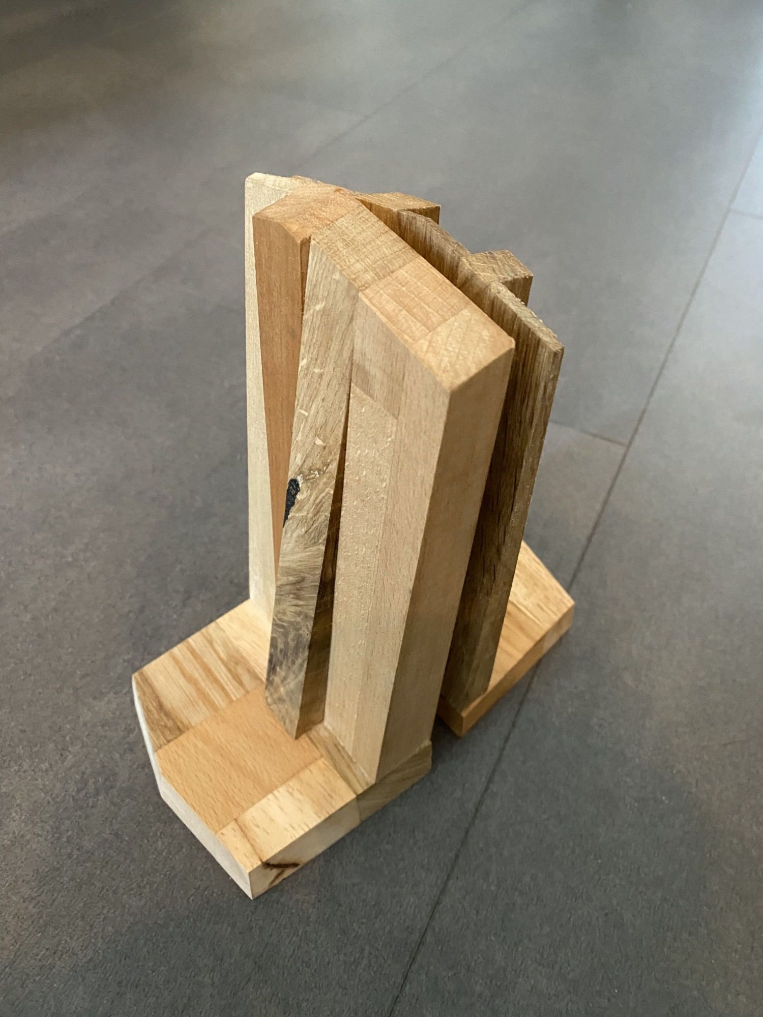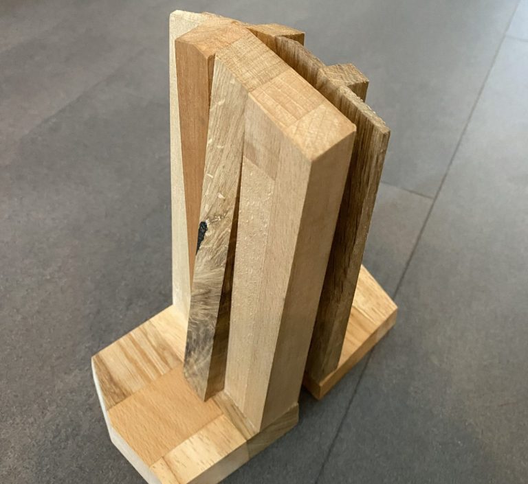 Set boekensteunen in twee varianten. Gemaakt van verschillende soorten hout en afgewerkt in een blanke lak.